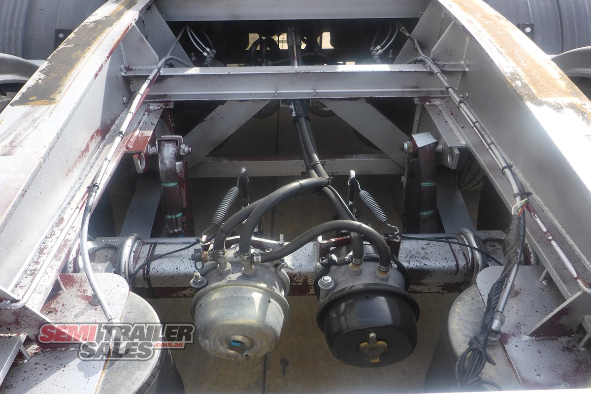 -Tri Axle (BPW) -Airbag Suspension -10 Stud Steel Hubs -Chequer Plate Steel Floor -11R22.5 Tyres -LED Lights -Bolt in King Pin -Landing Legs (Maxus) -Spare Tyre Carrier -Hanging Gates x8 -Floor Tie Down Railing -ABS