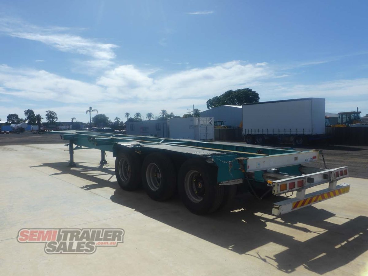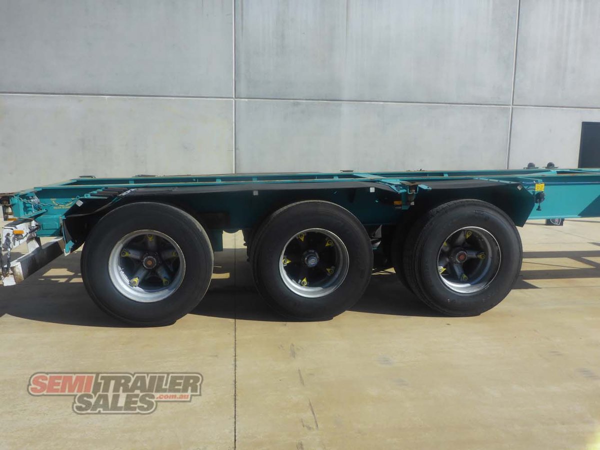 -Tri Axle (Hendrickson) -Airbag Suspension -Spider Hubs -11R22.5 Tyres -LED Lights -Bolt In King Pin -Landing Legs (Jost) -Rear Push Out Bar (Pneumatic) -3 Way Container Pins (1x 40FT or 2x 20FT or 1x 20FT Centred) -Hubodometer